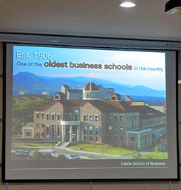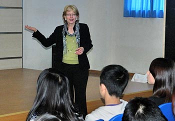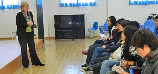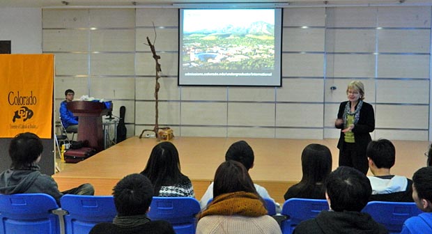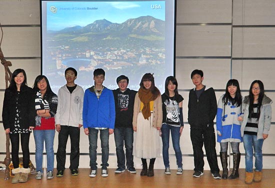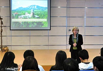 2012年3月14日周三,美國(guó)科羅拉多大學(xué)國(guó)際學(xué)生招生辦副主任Jeannine Bell女士來訪我校國(guó)際項(xiàng)目部。Bell女士為國(guó)際項(xiàng)目部高中學(xué)生做了一場(chǎng)精彩的演講。她向同學(xué)們介紹了科羅拉多大學(xué)的校園文化以及大學(xué)申請(qǐng)流程。同學(xué)們踴躍發(fā)言,積極提問。通過Bell女士的講解,同學(xué)們對(duì)科羅拉多大學(xué)的認(rèn)識(shí)更深了。