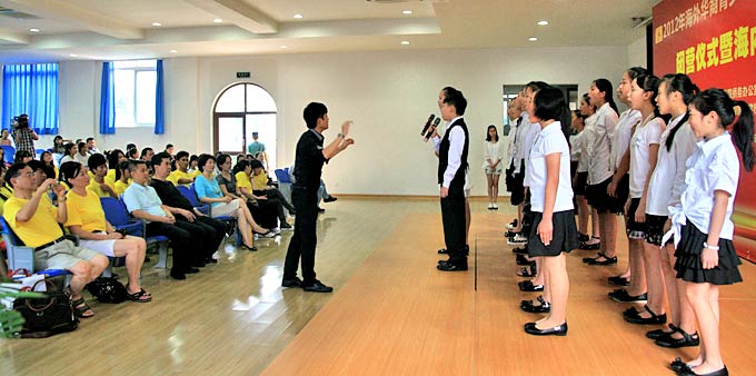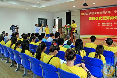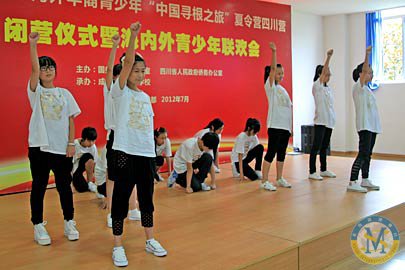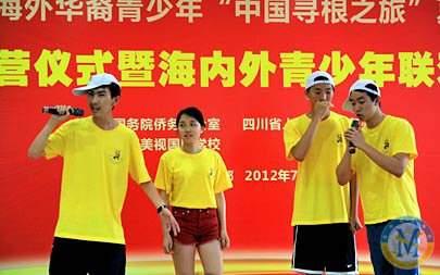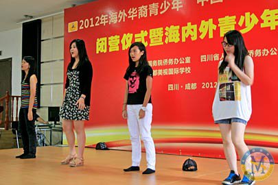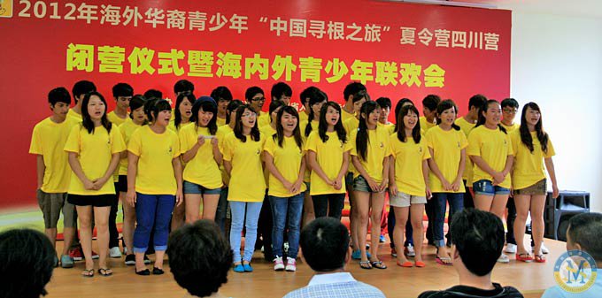 7月21日下午3點美視部學術(shù)廳,2012年海外華裔青少年“中國尋根之旅”夏令營四川營閉營儀式暨海內(nèi)外青少年聯(lián)歡會隆重舉行。首先營員代表為大家分享了夏令營中的難忘時刻與真實感受,我校領導、省僑務辦領導也分別上臺致辭,隨后美視學子和夏令營中來自多個國家與地區(qū)的同學們登臺表演了精彩的節(jié)目,在一陣陣掌聲中本次夏令營圓滿結(jié)束。