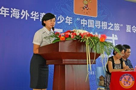我校小學(xué)部副校長(zhǎng)紀(jì)嵐老師主持開(kāi)營(yíng)儀式 省僑務(wù)辦領(lǐng)導(dǎo)發(fā)表致辭