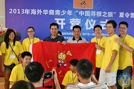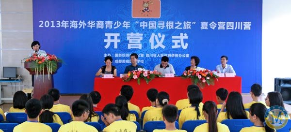 7月24日上午,2013年海外華裔青少年“中國(guó)尋根之旅”夏令營(yíng)四川營(yíng)開(kāi)營(yíng)儀式在我校國(guó)際部學(xué)術(shù)廳舉行。69名來(lái)自來(lái)自美國(guó)、加拿大、英國(guó)、德國(guó)、比利時(shí)、澳大利亞、日本、荷蘭、瑞典等國(guó)家的海外華裔青少年和領(lǐng)隊(duì)老師齊聚四川,學(xué)習(xí)中華文化,探尋文化之根。