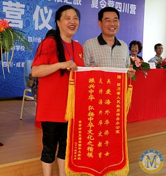 夏令營(yíng)領(lǐng)隊(duì)向四川省僑務(wù)辦贈(zèng)上錦旗 海外華裔青少年向我校贈(zèng)送禮物