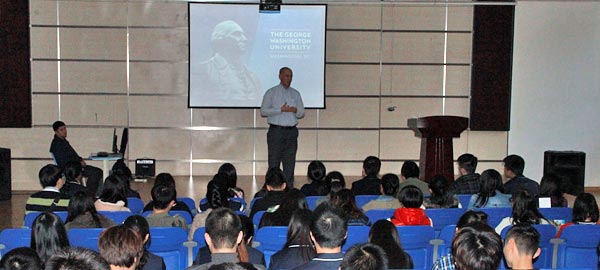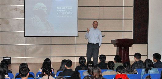 美國(guó)喬治華盛頓招生辦副主任Kevin Hostetler先生于2013年11月12日應(yīng)邀來(lái)到國(guó)際項(xiàng)目部為高中同學(xué)們做了一場(chǎng)精彩的招生宣講。同時(shí),我們邀請(qǐng)了中美英才班的同學(xué)們前來(lái)參加。
