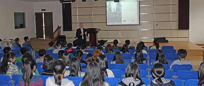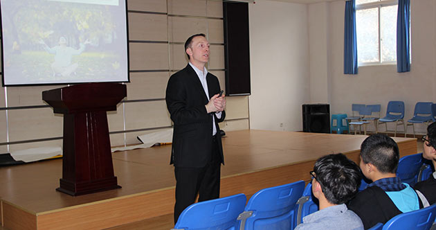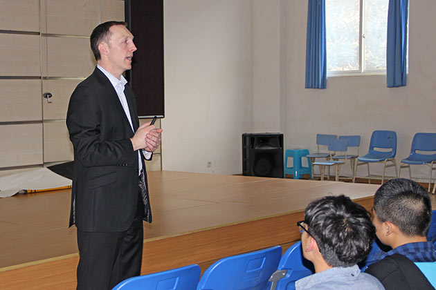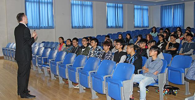 2015年3月26日,英國愛丁堡大學國際招生主任Robbie Willis先生應邀來訪我校國際部為同學們做了一場精彩的招生宣講。Willis先生首先與同學寒暄了一陣,問大家是否去過英國,是否到過愛丁堡,到過的同學對愛丁堡的印象如何等等。然后他向同學們介紹了愛丁堡大學的地理位置與周邊環(huán)境。接近著,進入主題。詳細介紹了入學申請程序、入學要求、愛丁堡大學的院系及專業(yè)、學費結構等。同學們聽得十分認真,也現(xiàn)場問了Willis很多他們關心的問題。