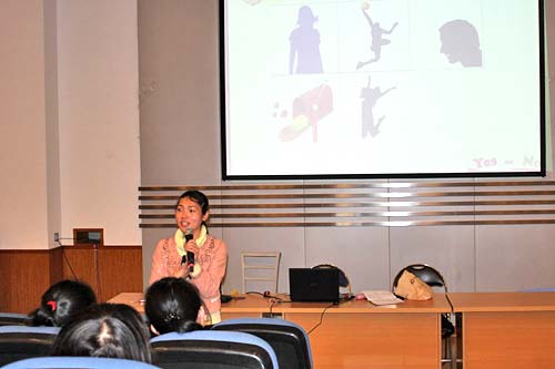 4月19日下午6:40,美視中學(xué)部委托校團(tuán)委書(shū)記、心理老師劉敏在學(xué)術(shù)廳針對(duì)高一、高二100多名女生舉辦女性話(huà)題講座。劉老師從青少年女性的生理心理特點(diǎn)切入話(huà)題,不時(shí)插播一些相關(guān)的視頻,并以知心姐姐的身份就女性自我保護(hù)、戀愛(ài)等敏感問(wèn)題提出了忠告。由于講座內(nèi)容貼近女生思想實(shí)際,觸及了女生的心理煩惱,而情深意切、語(yǔ)重心長(zhǎng)的講解又確實(shí)解決了許多女生的心結(jié)和困惑,有的甚至起到警醒的效果,因此講座持續(xù)到晚上9點(diǎn)同學(xué)們聽(tīng)興尤濃。
