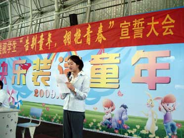 2009年6月1日,中學部舉行了中學部“告別童年,擁抱青春”宣誓大會。過活動的開展,使學生感受到自己長大了,了解青年應(yīng)承擔的責任,學會自我管理,確立正確的價值觀,推動學生健康成長;促進良好校風的不斷發(fā)展。