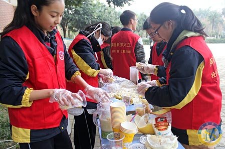 2013年12月20日下午,天氣陰冷,但中學(xué)部操場上卻是滿滿的暖意。中學(xué)部第二屆愛心義賣活動拉開序幕。同學(xué)們用自己的雙手制作出的精美作品,在這里拍賣。所獲得的愛心款項會送給最需要幫助的人。