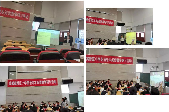 本月,英語(yǔ)組參加了高新區(qū)教研室組織的小學(xué)英語(yǔ)繪本閱讀教學(xué)研討活動(dòng)。活動(dòng)中,由外籍教師和中方教師各呈現(xiàn)了一堂閱讀課,然后澳洲籍繪本教學(xué)專家Rod開(kāi)展了 《how to teach children English with picture stories》的專題講座。