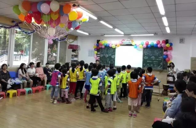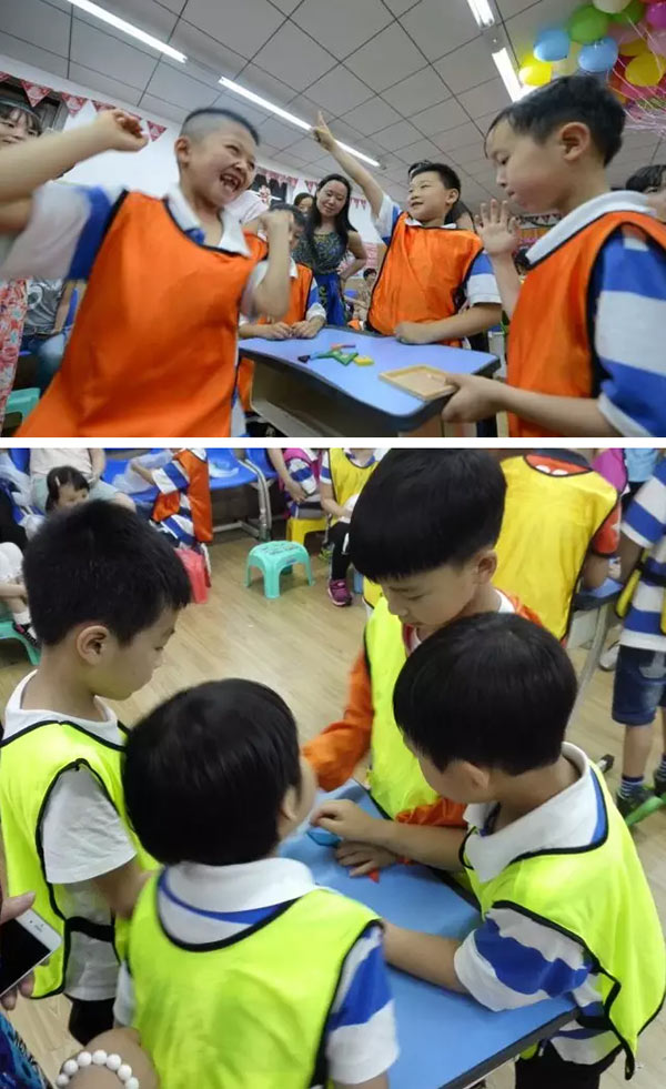 下午三點,家長們準(zhǔn)時來到教室,孩子們抑制不住興奮,圍繞在爸爸媽媽身邊嘰嘰喳喳笑個不停,歡樂的氛圍已經(jīng)溢出了教室外?;顒娱_場,孩子們分成5個團隊,穿上不同顏色的背心,一下子小團隊之間的比賽氛圍就出來啦!