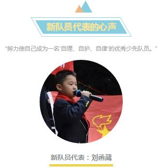 新隊員代表劉函葳小朋友,用稚氣的話語自信地告訴大家:“很久以來,我心中就有個夢想,盼望有一天,能像大哥哥大姐姐一樣戴上紅領(lǐng)巾,在鮮艷的隊旗下莊嚴(yán)宣誓……向辛勤培育我們的老師表示衷心的感謝!努力使自己成為一名‘自理、自護、自律’的優(yōu)秀少先隊員。”