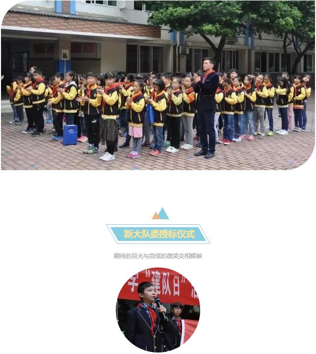 緊接著,德育處張主任為我們宣布了少先隊員中的優(yōu)秀代表——新大隊委名單,他們是美視孩子們的榜樣。