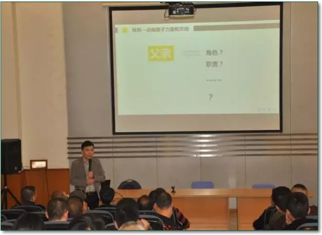 楊老師告訴在座的爸爸們:“‘父教’對于一個孩子的成長極其重要,爸爸對孩子一句鼓勵的話是媽媽鼓勵作用的50倍,“父教”甚至決定著孩子人生的發(fā)展方向,所以父愛不容缺失。