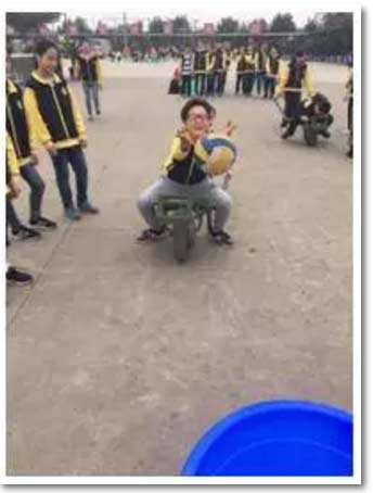 坐在雞公車?yán)锿痘@,你沒見過吧?嘿,這可比真正的投籃難多了,瞧,投籃高手也有失誤的時候?。?/span>
