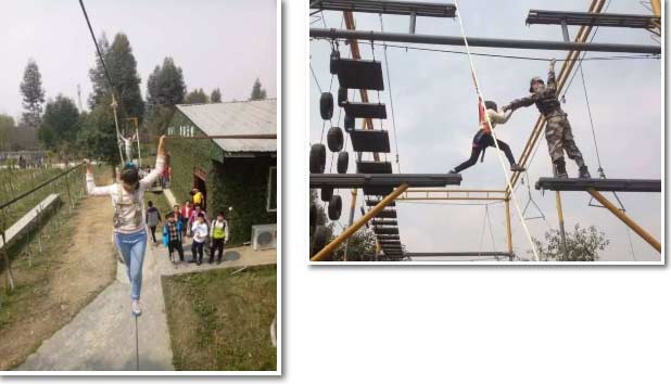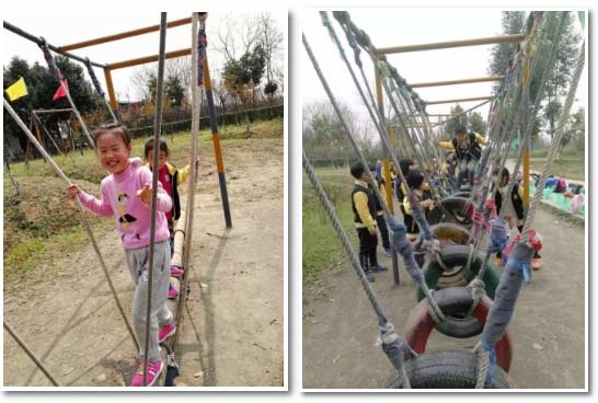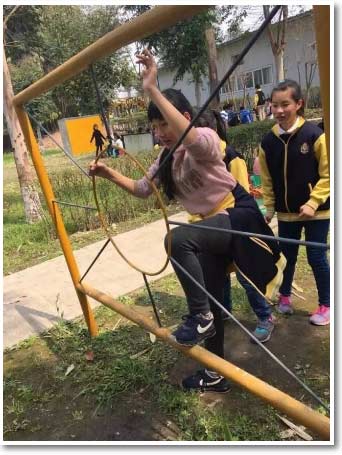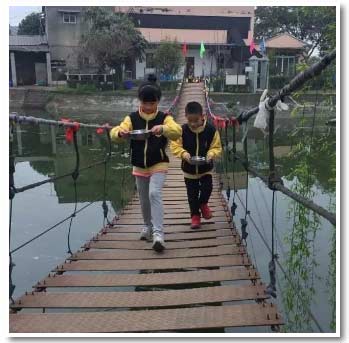 索橋運(yùn)水中,看看哪個組運(yùn)的又多又快!瞧,我們?nèi)菀讍幔?/span>