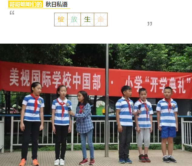 緊接著,六年級4班的哥哥、姐姐們也站上了旗臺,為大家送來了新學期里秋日的私語……