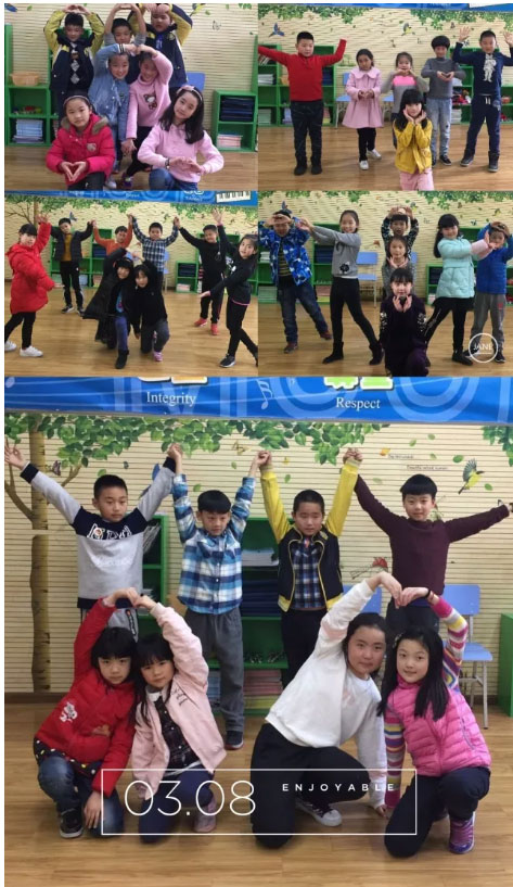 三月,鮮妍明媚。六年級的孩子們,想起了媽媽慈愛的臉,浮現(xiàn)出老師關心的眼,他們要把祝福送給媽媽和老師,男孩子們,還要把祝福送給班級的女漢子們,他們共同寫道: