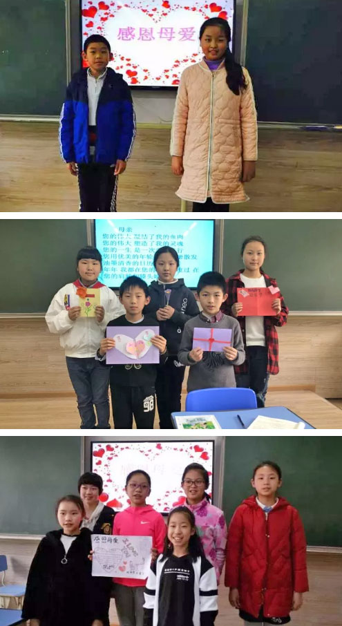 在活動中,同學們誦古詩、讀詩歌、為母親制作祝???/strong>,讓孩子們?nèi)ジ惺苣笎鄣膫ゴ蠛蜔o私,懂得去贊美女性,學會尊重女性。