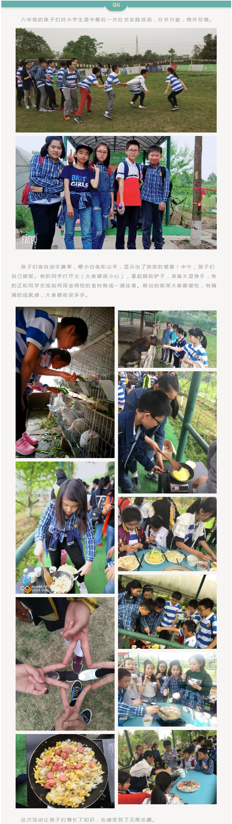 我們的春季社會實踐活動,帶給了孩子們一種全新的體驗。我們更注重培養(yǎng)學生的自我行為習慣的管理能力。從前置課程的準備,到活動當天的細節(jié),再到活動結束后的反思,都是孩子們用心感受的經歷。