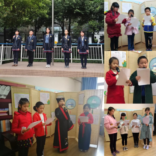 中國部·小學(xué)每個(gè)年級(jí)的學(xué)生代表們,通過廣播“讀詩成曲,傳誦經(jīng)典”,讓國學(xué)的音韻縈繞在美視校園里