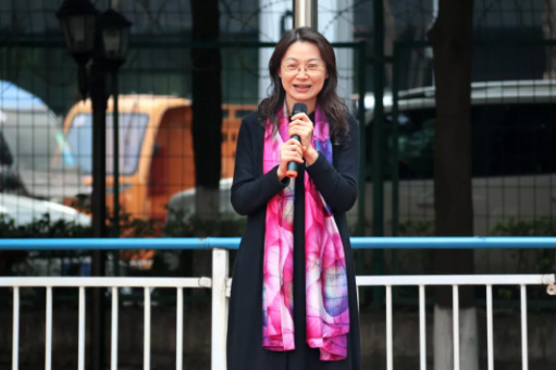 開幕式上,中國部·小學(xué)的孟校長(zhǎng)帶領(lǐng)孩子們吟誦了經(jīng)典的《木蘭辭》。
