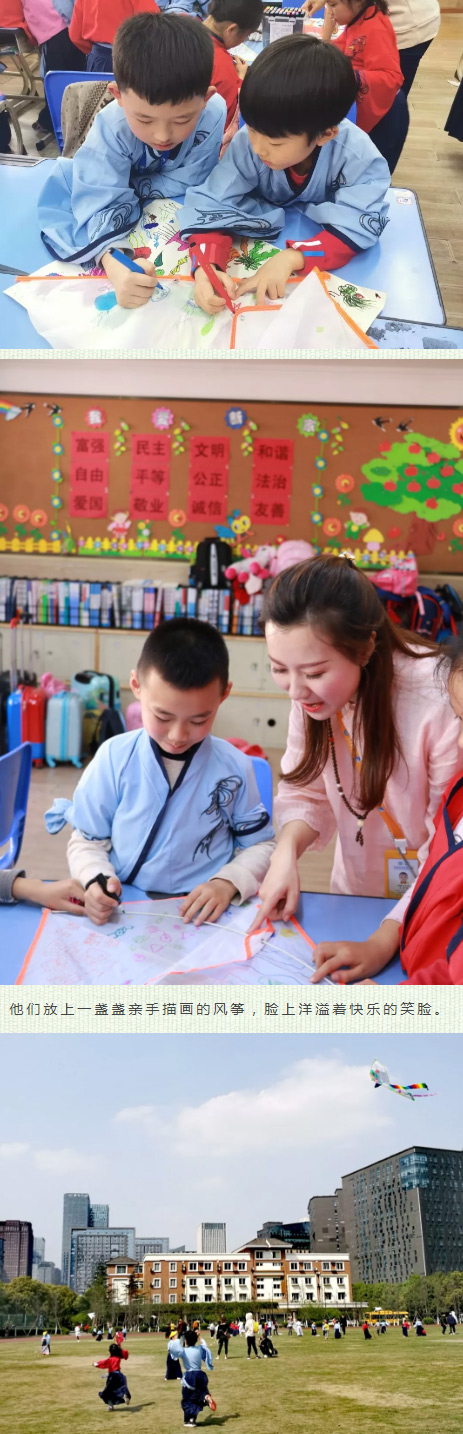 詩里有春天、有紙鳶、有童趣。爸爸媽媽也和我們一起畫風(fēng)箏,到操場(chǎng)放風(fēng)箏呢!