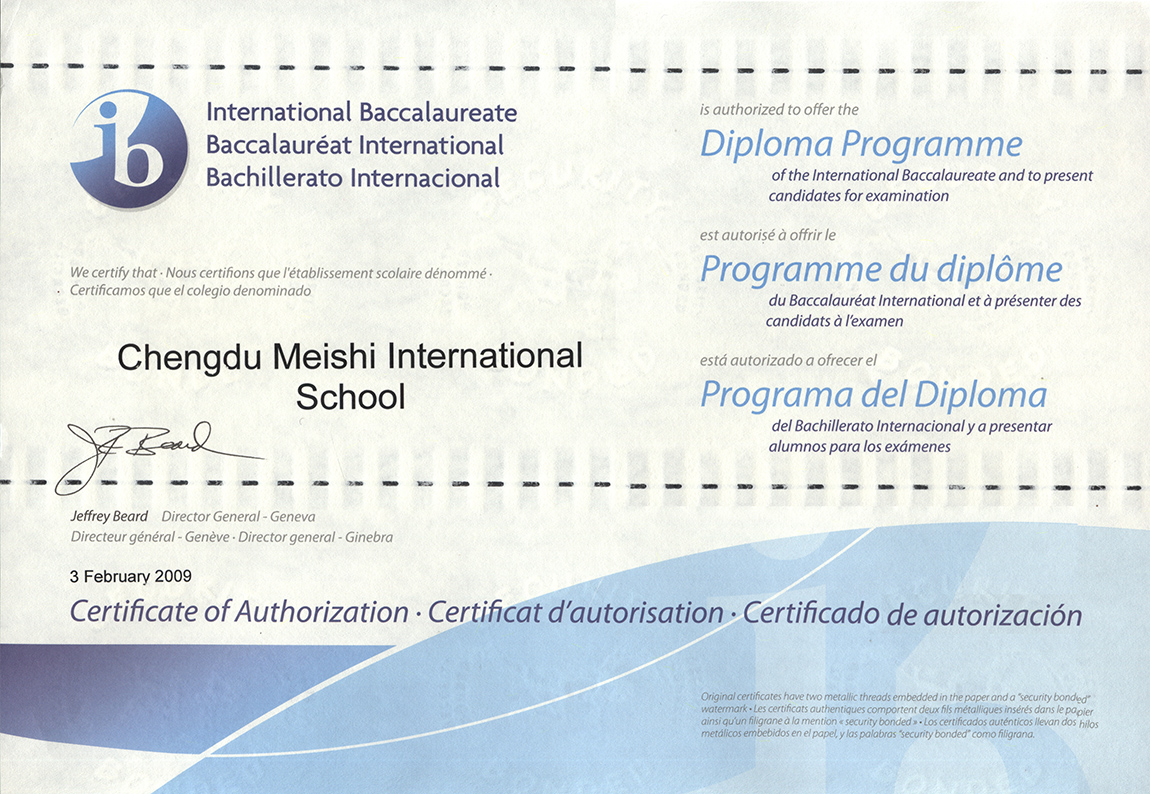 成都美視師一學(xué)校經(jīng)IB授權(quán),引進(jìn)DP(有文憑)課程;獲DP和MYP、PYP授權(quán),開設(shè)DP、MYP、PYP項(xiàng)目,美視師一是中國西南地區(qū)首家同時(shí)實(shí)施IB三大項(xiàng)目的國際學(xué)校。
