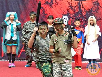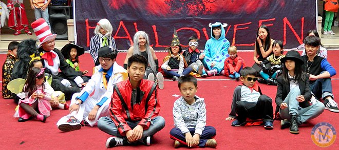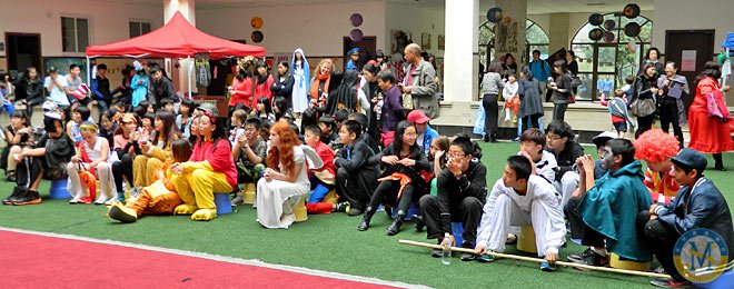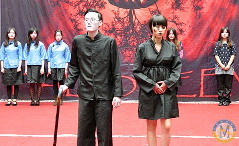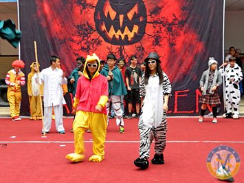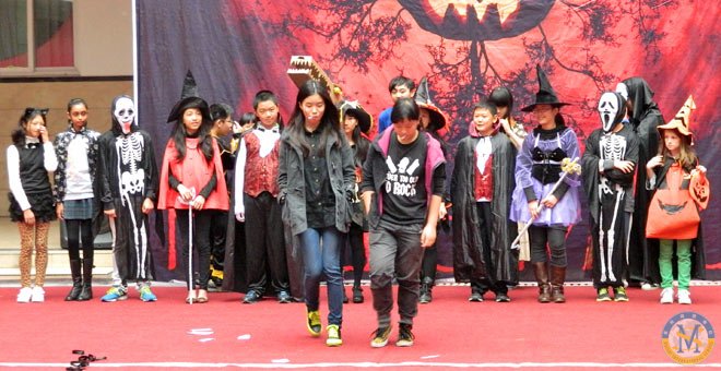 2013年10月31日下午,美視部在教學(xué)樓歡慶2013年度萬(wàn)圣節(jié)。舟艾倫老師與傅豪老師擔(dān)任活動(dòng)主持人。穿著不同顏色、不同款式的萬(wàn)圣節(jié)盛裝的同學(xué)們按年級(jí)出場(chǎng),在觀眾面前擺出不同的姿勢(shì),贏得了觀眾的陣陣掌聲。之后,部分同學(xué)參觀了“鬼屋”,其他同學(xué)參與了游戲。同時(shí),學(xué)校為大家提供了糖果、飲料及點(diǎn)心。傍晚時(shí)分,部分同學(xué)留在禮堂觀看與萬(wàn)圣節(jié)相關(guān)的恐怖片,其余同學(xué)參觀了“鬼屋”。
