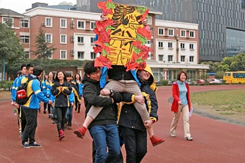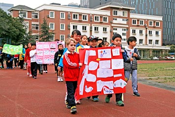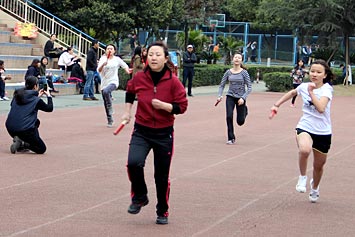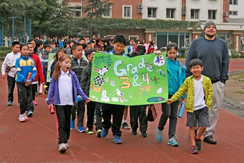 當(dāng)天早上,首先由國(guó)際項(xiàng)目部副校長(zhǎng)姜校長(zhǎng)致開幕詞。之后,同學(xué)們按不同年齡段或年級(jí)被分為不同小組參與不同項(xiàng)目的比賽。比賽項(xiàng)目有籃球、足球、跳高、跳遠(yuǎn)、投擲、400米接力賽跑、尋寶游戲、拔河游戲、羽毛球賽等等。值得一提的是,融合部小學(xué)生的家長(zhǎng)們應(yīng)邀參加了親子游戲。運(yùn)動(dòng)會(huì)結(jié)束前,姜校長(zhǎng)為獲獎(jiǎng)選手頒獎(jiǎng)。通過(guò)本次運(yùn)動(dòng)會(huì),同學(xué)們明白一個(gè)道理,只有具有健康的身體,他們才能在今后的工作學(xué)習(xí)中做得更好。