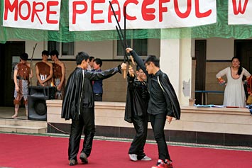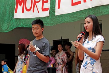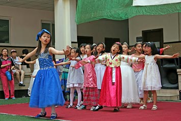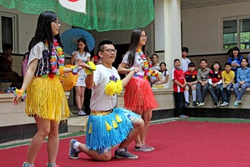 本次活動(dòng)包含學(xué)生演唱的歌曲、學(xué)生舞蹈以及由學(xué)生(與家長(zhǎng))帶來(lái)的多種表演。融合部中庭搭好了四個(gè)帳篷,分別代表中國(guó)、韓國(guó)、美國(guó)等國(guó)家。同學(xué)們可以到帳篷附近參與多種游戲,還可以品嘗來(lái)自不同國(guó)家的美食。