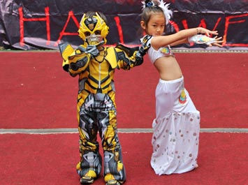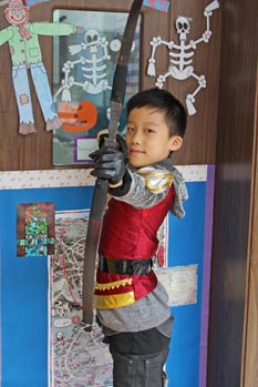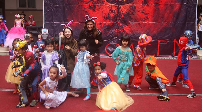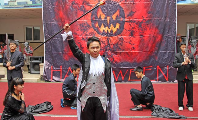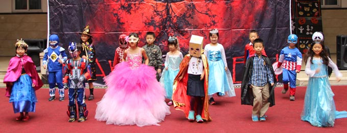 2014年10月31日下午,美視部在教學(xué)樓歡慶2014年度萬圣節(jié)。穿著不同顏色、不同款式的萬圣節(jié)盛裝的同學(xué)們按年級出場,在觀眾面前擺出不同的姿勢,贏得了觀眾的陣陣掌聲。之后,部分同學(xué)參觀了“鬼屋”,其他同學(xué)參與了游戲。同時,學(xué)校為大家提供了糖果、飲料及點心。
