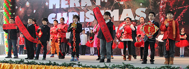 慶典一開(kāi)始,劉校長(zhǎng)上臺(tái)致辭,他回顧了融合部的過(guò)去,展望了我們美好的未來(lái),希望在座所有人一起努力,繼往開(kāi)來(lái),將我們的國(guó)際教育推向一個(gè)新的臺(tái)階。在圣誕新年來(lái)臨之際,劉校長(zhǎng)祝愿每一位在座的師生、家長(zhǎng)們圣誕快樂(lè)、新年快樂(lè)。