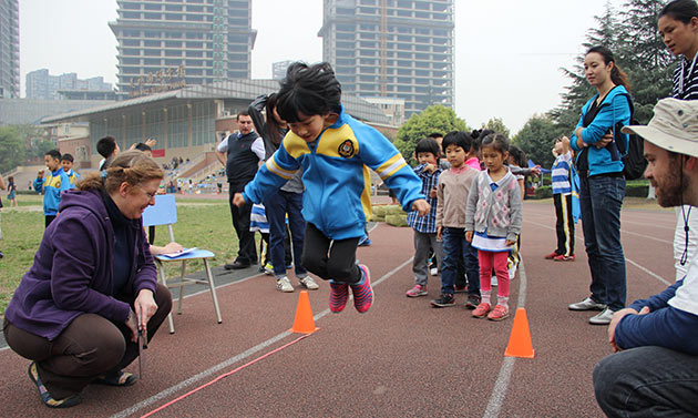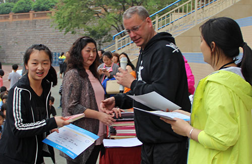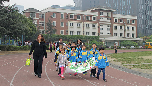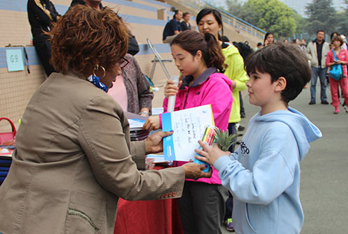 當(dāng)天早上,首先由國(guó)際項(xiàng)目部劉校長(zhǎng)致開(kāi)幕詞。之后,同學(xué)們按不同年齡段或年級(jí)被分為不同小組參與不同項(xiàng)目的比賽。比賽項(xiàng)目有籃球、足球、跳高、跳遠(yuǎn)、投擲、400米接力賽跑、尋寶游戲、羽毛球賽等等。值得一提的是,融合部小學(xué)生的家長(zhǎng)們應(yīng)邀參加了親子游戲。運(yùn)動(dòng)會(huì)結(jié)束前,姜校長(zhǎng)為獲獎(jiǎng)選手頒獎(jiǎng)。通過(guò)本次運(yùn)動(dòng)會(huì),同學(xué)們明白一個(gè)道理,只有具有健康的身體,他們才能在今后的工作學(xué)習(xí)中做得更好。