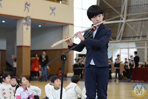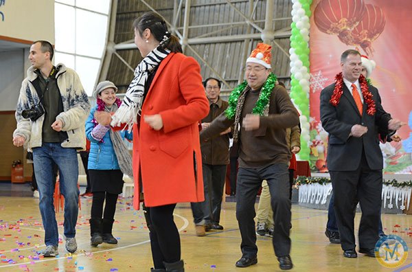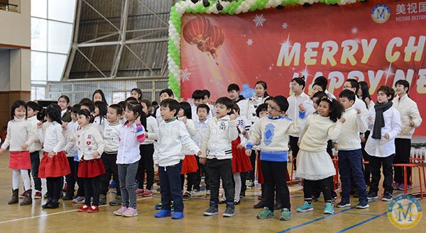 冬日難得一見的暖陽映照著充滿活力的校園,濃濃的圣誕新年氛圍悄悄地藏在校門口高大的圣誕樹上,藏在圣誕老公公和藹的笑容中,藏在融合部每位老師與孩子的心里。12月18日的學(xué)校體育館里歡聲笑語,紅色綠色的圣誕裝飾物隨處可見。孩子們同家長、老師一道歡聚一堂,慶祝這個歡樂的節(jié)日。