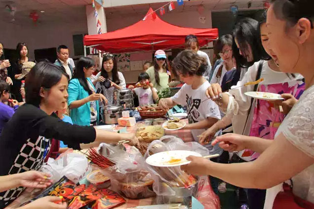 中國的餃子、美國的披薩、日本的壽司、韓國的泡菜……家長、老師們精心準(zhǔn)備的美味佳肴擺滿桌子。我們品嘗不同國家的可口美食的同時,也品味著不同國家的飲食文化。