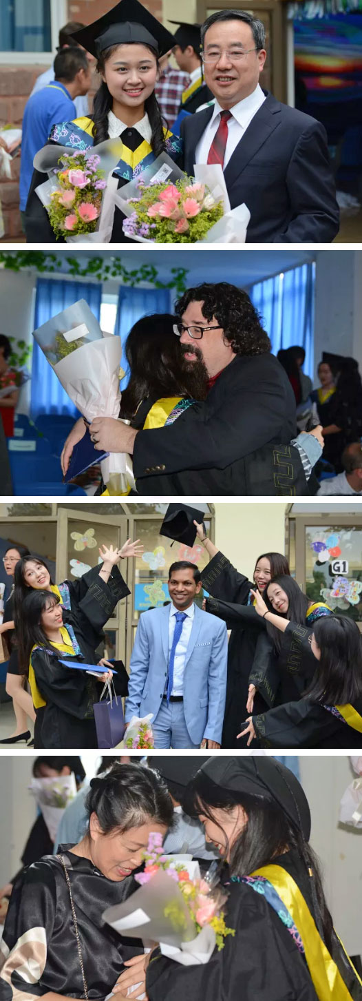 劉校長(zhǎng)、Mr.Kevin Blissett、羅銳老師為畢業(yè)生們頒發(fā)畢業(yè)證書并合影留念。
