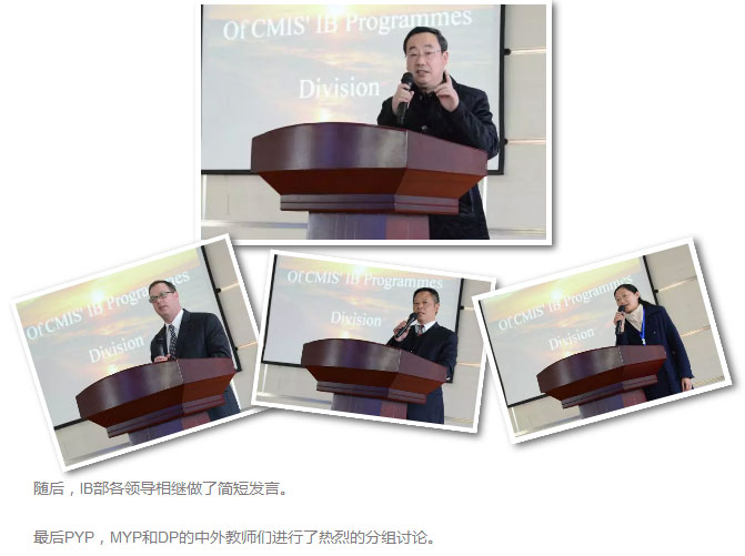 “大家下午好!雖然董事會(huì)成立融合部的決定是在2015年3 月26日做出的,但是今天是我們向我校在IB DP, MYP, PYP三個(gè)項(xiàng)目工作的全體教職員工正式宣布的隆重時(shí)刻......”