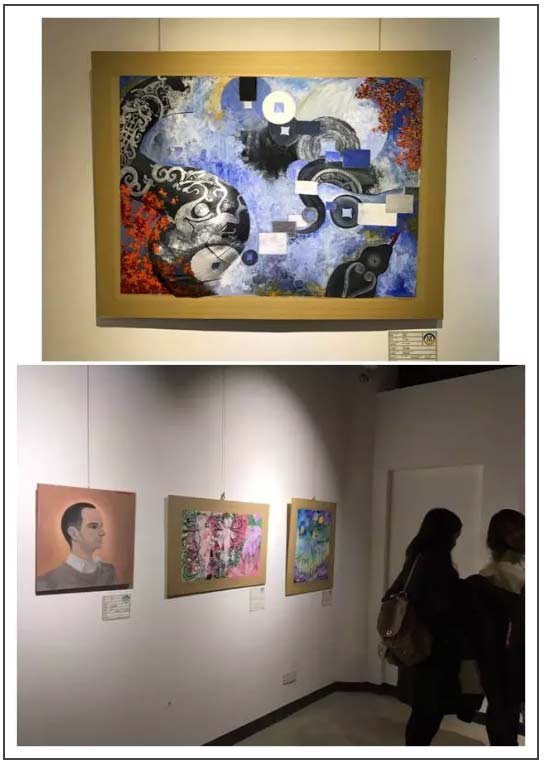 這一次我校展出的作品有版畫、油畫、蠟染、裝置藝術(shù)和攝影等作品。