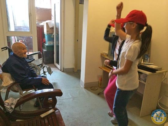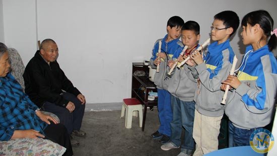 走進(jìn)社區(qū),服務(wù)老人,孩子們每次的體會(huì)都很深刻。當(dāng)他們走進(jìn)那些獨(dú)居老人的家,看見(jiàn)家中簡(jiǎn)單無(wú)華的樸質(zhì)擺設(shè),當(dāng)他們知道有些爺爺奶奶身體殘疾無(wú)人照料,當(dāng)他們了解原來(lái)生活中還有如此的艱辛與勞苦時(shí),他們只能用行動(dòng)表達(dá)自己的關(guān)懷。每一次,可能只是讀讀報(bào)紙、講講故事、背背古詩(shī)、吹吹豎笛、跳跳舞,也可能只是動(dòng)手擦擦桌子、抹抹家具、掃掃地……