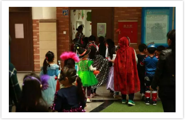 不一會兒,平日里樂于表達(dá)的他們手里已經(jīng)捧著滿滿的糖果,每個人臉上都洋溢著開心的笑容;看似荒誕卻又是百無禁忌的童真歡樂日。