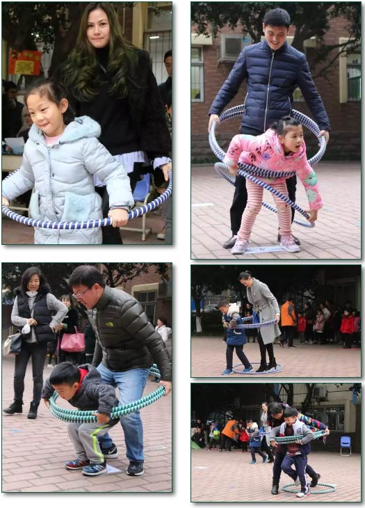 瞧,老師們?cè)缇蜑槊總€(gè)家庭精心策劃并準(zhǔn)備好了二十多個(gè)活動(dòng)項(xiàng)目:“水果接力”、“爬大樹”、“瞎子摸象”、“毛毛蟲”、“青蛙入洞”、“好運(yùn)彩彈”、“巧手夾珠”、“你做我猜”、“快樂家庭巧打扮”、“開心保齡球”、“百發(fā)百中”、“火眼金睛”、“快樂傳遞”、“踏石過河”、“我是神投手”、“Chinese whisper”、“Throw the ball”……