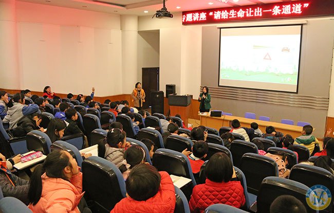 這次講座的主題是“請給生命讓出一條通道”,熱情的叔叔阿姨為孩子們進(jìn)行交通法規(guī)的宣講。同學(xué)們觀察道路圖片,然后提問交流,通過交流他們認(rèn)識(shí)了應(yīng)急車道。
