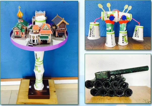 保護(hù)環(huán)境,變廢為寶,是我們永恒的主題。謝謝爸爸媽媽手下留情,幫助我們收集廢舊物品。看!哥哥姐姐們的作品,設(shè)計(jì)感滿滿的: