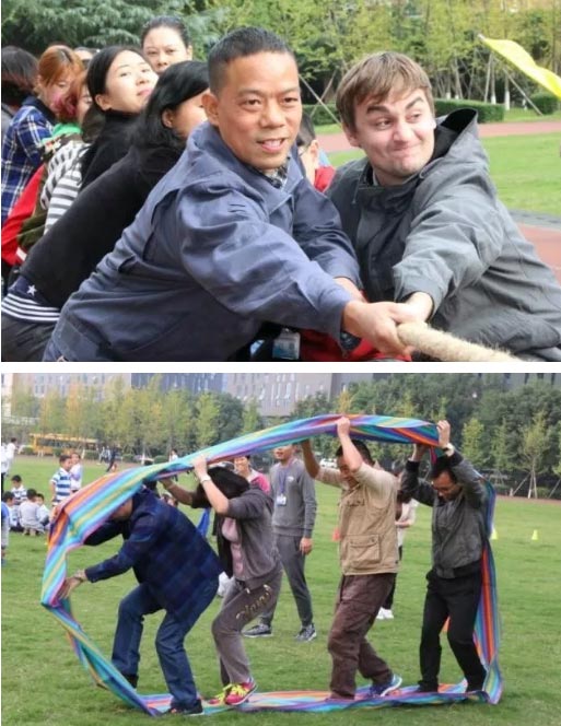 他們工作起來(lái)嚴(yán)謹(jǐn)專注,運(yùn)動(dòng)起來(lái)也很投入!他們與師生一起運(yùn)動(dòng)、一起快樂(lè)!是的,我們都是家校學(xué)習(xí)者社區(qū)的成員,我們是“一家人”!