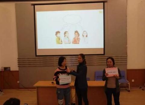 一陣議論過后,林老師邀請兩位家長上臺配合她做一個(gè)小小的情景再現(xiàn)。