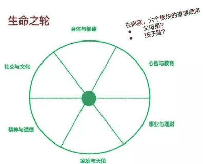 “身體健康”、“社交文化”、“心智與教育”、“精神與教育”、“家庭與天倫”、“事業(yè)與理財(cái)”這六大教育版塊構(gòu)成生命的圓輪,完滿的人生缺一不可。