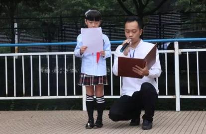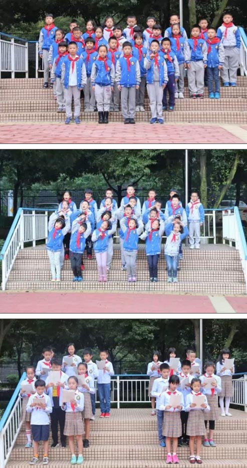 每周一的升旗儀式后,老師用“朗讀者”的方式,向經(jīng)典致敬。