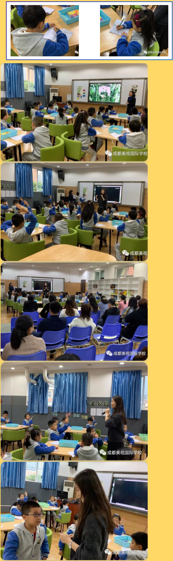 IB-PYP二年級的全體老師集思廣益,精心備課,在開放日當天給家長們一個零距離接觸孩子課堂的機會,專注孩子的成長變化和學習習慣,從而更好地了解學校,了解孩子的在校生活。走進《共享地球》主題探究課堂,家長們看到了那個愛舉手發(fā)言的孩子、看到了那個喜歡主動思考的孩子、看到了那個善于組織討論的孩子……