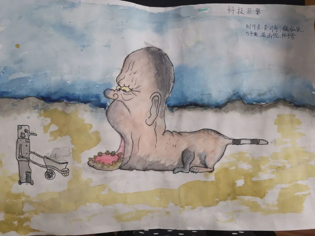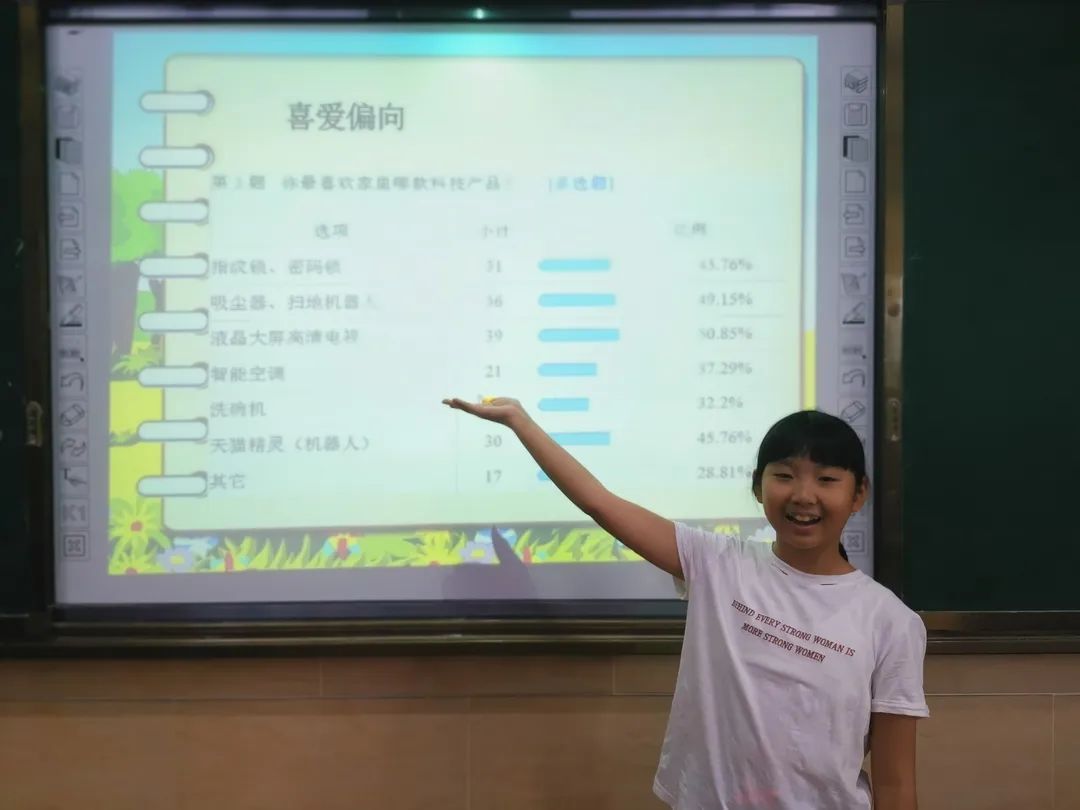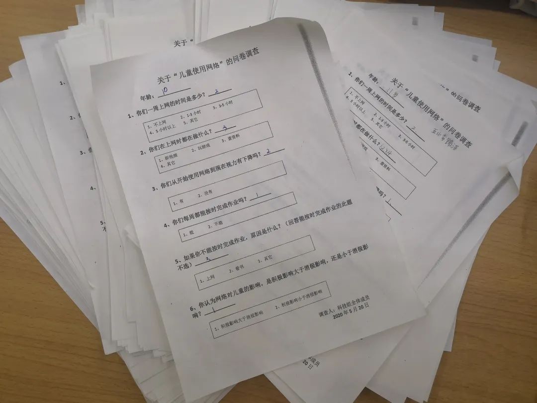 圍繞“科技給兒童帶來的挑戰(zhàn)和機遇”,“兒童與科技”組員們自主選擇科技話題,如網(wǎng)絡、大數(shù)據(jù)、無人駕駛、團圓系統(tǒng)等,展開了系列探究:梳理表格《三代童年家居生活用品的不同》;積極進行《關于兒童使用網(wǎng)絡的問卷調查》,收集數(shù)據(jù),整理并制作復式折線統(tǒng)計圖,發(fā)現(xiàn)兒童使用網(wǎng)絡對其身心健康造成影響的變化趨勢;為《科技是把雙刃劍》做英文配音,繪制漫畫《科技巨嬰》;大膽設計一款可以提高生活水平的科技用品;排演話劇《神奇的機器人》和舞蹈《科技之光》,倡導兒童合理使用科技資源,享受科技帶來的快樂;創(chuàng)意制作視頻《我們的世界》,暢想“科技創(chuàng)造未來”的美好愿景。