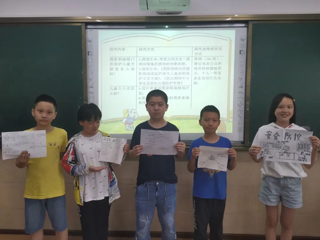 面對突如其來的新冠肺炎疫情,“兒童與疾病”探究組員們以積極投入的態(tài)度回應這場危險和挑戰(zhàn):關注時事新聞,整理數(shù)據(jù),用條形統(tǒng)計圖科學展示疫情的發(fā)展趨勢;結合生活實際,制定個人疫情居家生活及運動計劃;認真閱讀和觀影,拓展研究世界上系列疾病發(fā)展歷史,如黑死病、艾滋病、非典、流感、水痘;查找資料,深入研讀兒童患病癥狀及防護措施;小組交流,反思人類與自然和諧共處的法則。