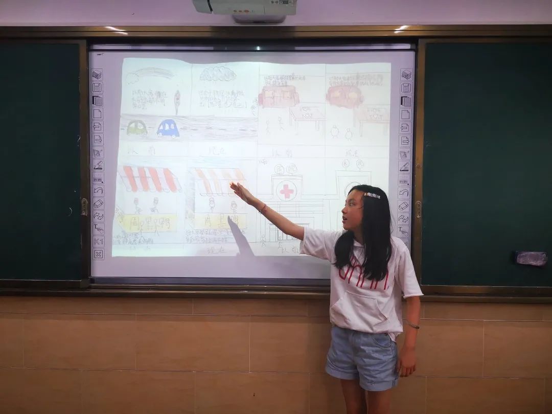 孩子們選擇了《共享地球》——“世界兒童面臨著系列危險、挑戰(zhàn)、機遇”作為探究主題,分成五個小組:“兒童與戰(zhàn)爭”、“兒童與貧困”、“兒童與疾病”、“兒童與生活”、“兒童與科技”開展系列探究。從疫情期間的在家探究,到復課后的小組合作;從調查選題,到問題驅動;從閱讀整理,到動手實踐;從發(fā)現(xiàn)反思,到形成觀點;從導師引領,到獨立設計;從過程探究,到成果展示。孩子們用個性的圖文繪制,用創(chuàng)意的形式表達,用自信的鏡頭記錄,為校園的夏天增添一抹精彩濃烈的色彩。