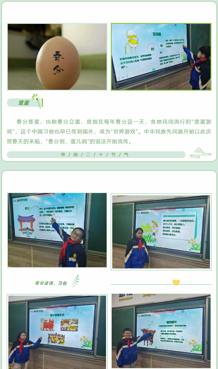 春分,是我國傳統(tǒng)文化中二十四節(jié)氣之一,也是一歲中春季的第四個節(jié)氣,融合部小學(xué)四年級二班班的同學(xué)們圍繞著“春分”這一主題進(jìn)行了超學(xué)科探究。